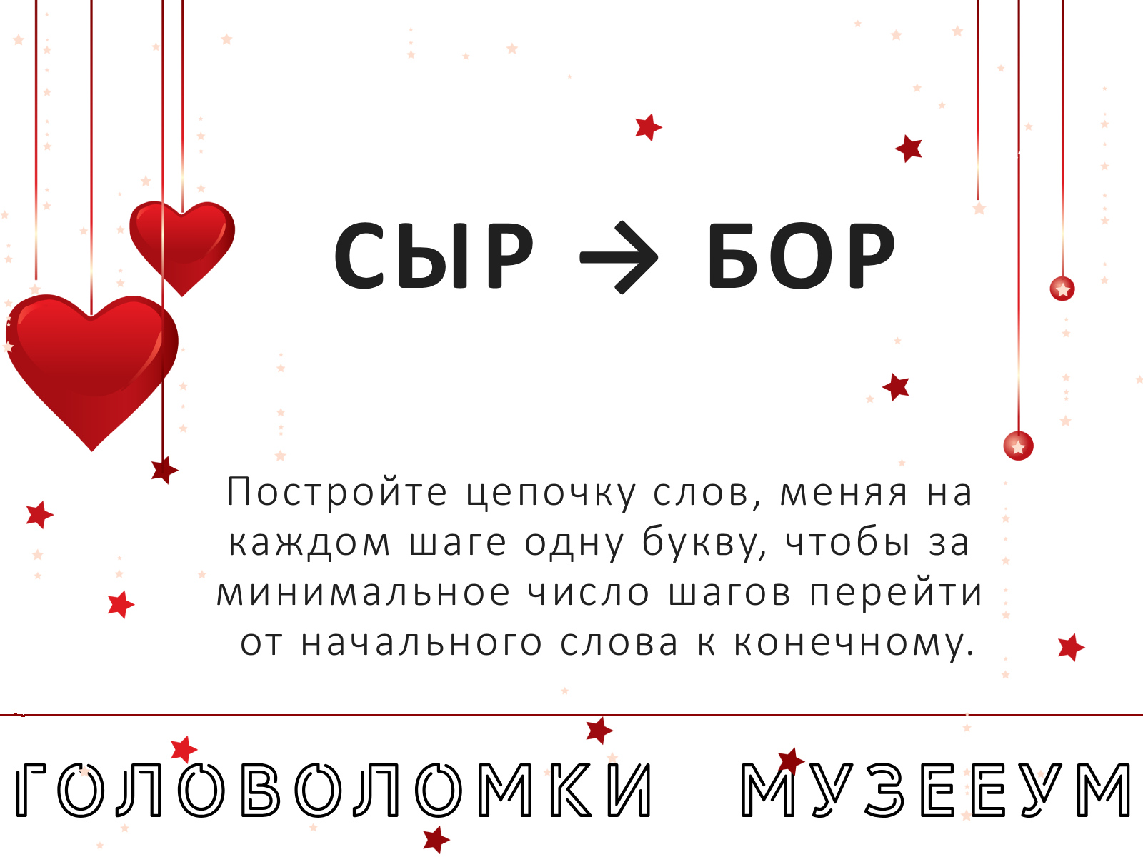 Постройте цепочку слов, меняя на каждом шаге одну букву, чтобы за минимальное число шагов перейти от начального слова (сыр) к конечному (бор).